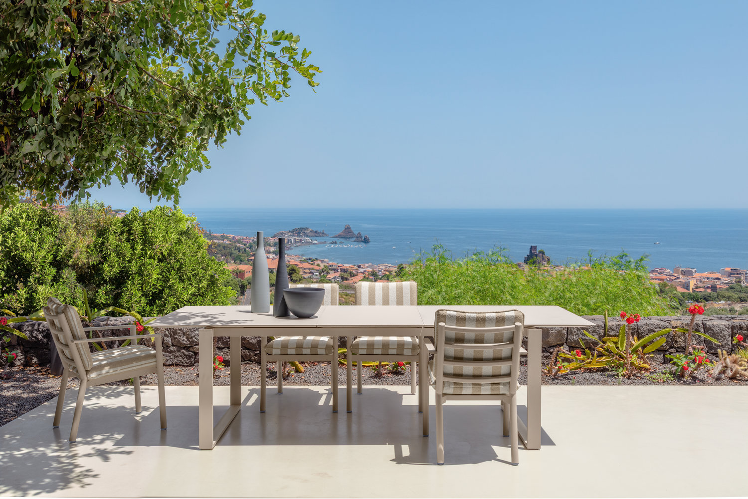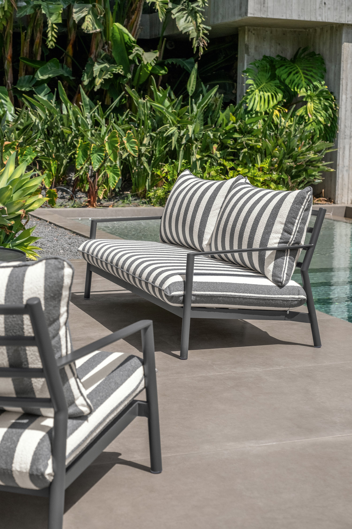 La collection Finn de Talenti, proposée par Eden Mobilier Alsace, mise sur la simplicité élégante et la précision technique. Entièrement conçue en aluminium, elle se distingue par ses lignes nettes, ses volumes sobres et son tissu rayé discret, idéal pour les terrasses, jardins et toits modernistes. Finn s’intègre naturellement dans l’espace extérieur et crée une atmosphère calme, épurée et parfaitement équilibrée.