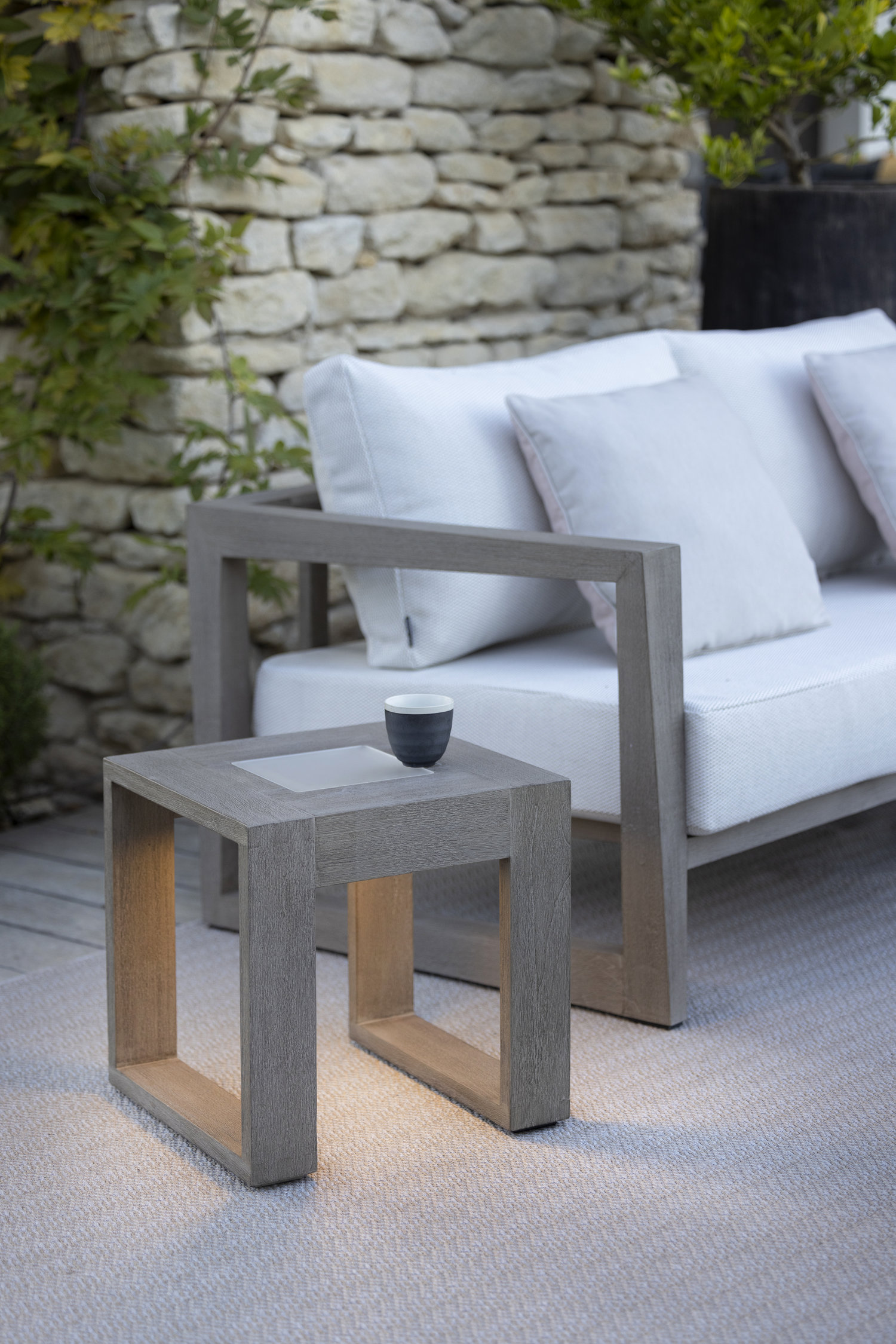 La collection Rancho Les Jardins séduit par sa table basse lumineuse solaire et rechargeable, alliant esthétique naturelle et technologie moderne. Conçue en teck massif à la finition Duratek®, elle se distingue par sa plaque en verre dépoli acrylique qui diffuse une lumière douce et élégante. Avec ses dimensions compactes de 40 x 40 cm, cette table lumineuse apporte une touche chaleureuse et raffinée à tout espace extérieur.