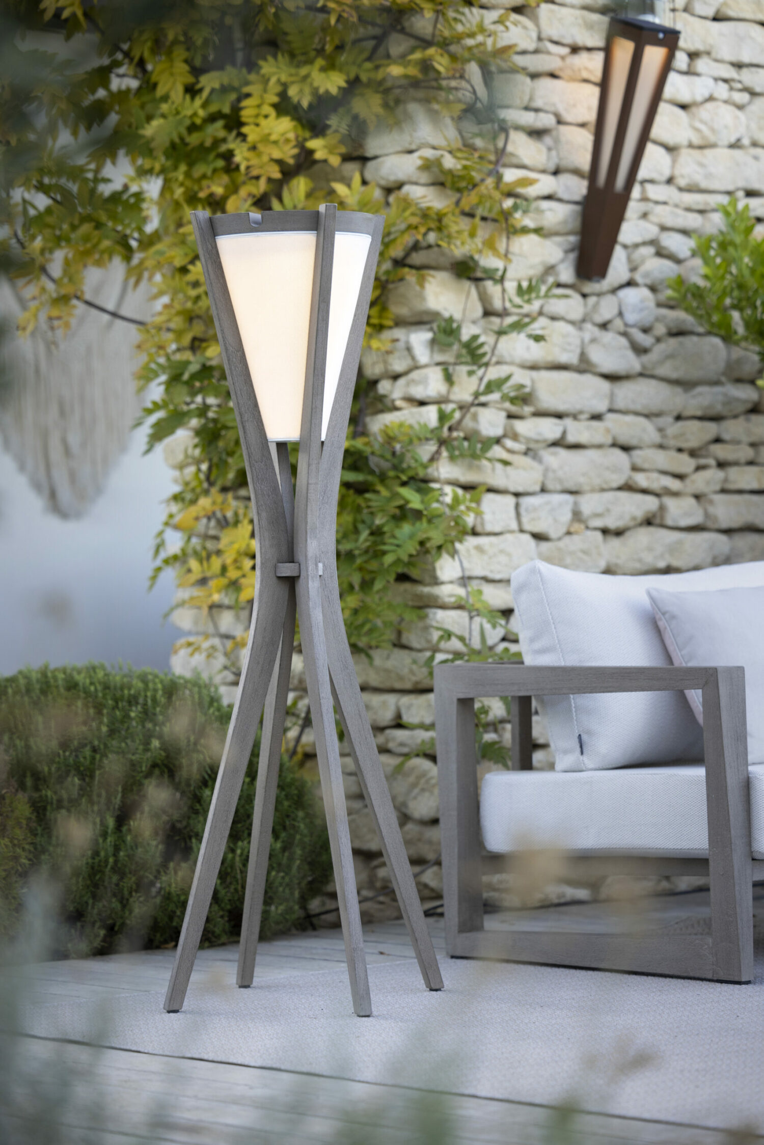 La collection Selva Les Jardins, designée par Denali, allie élégance et naturel à travers un lampadaire solaire et rechargeable de 150 cm de hauteur. Réalisé en teck massif à la finition Duratek® et toile Ateja blanche, il offre une puissance lumineuse de 500 lumens pour un éclairage doux et raffiné. Idéal pour créer une ambiance chaleureuse en extérieur, il est recommandé avec une base en pierre pour une stabilité parfaite. La collection Selva Les Jardins incarne le design durable et sophistiqué.