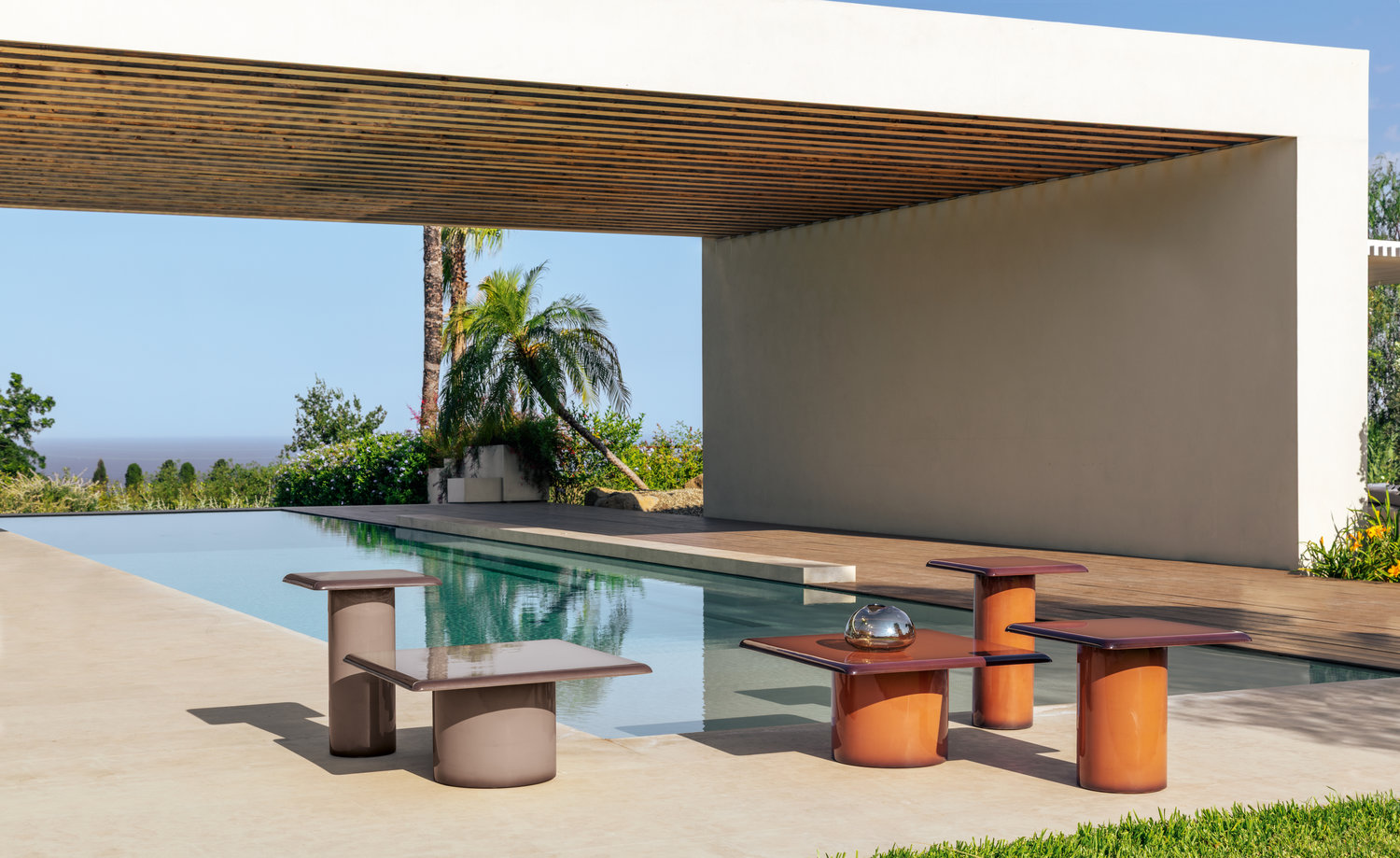 La collection Snap de Talenti réunit trois tables à café de 3 tailles différentes et un pouf assorti, déclinés en marron, beige et orange. Des pièces légères, polyvalentes et élégantes, parfaites pour structurer et colorer les espaces extérieurs premium. Un design moderne qui apporte rythme et fonctionnalité à votre terrasse.